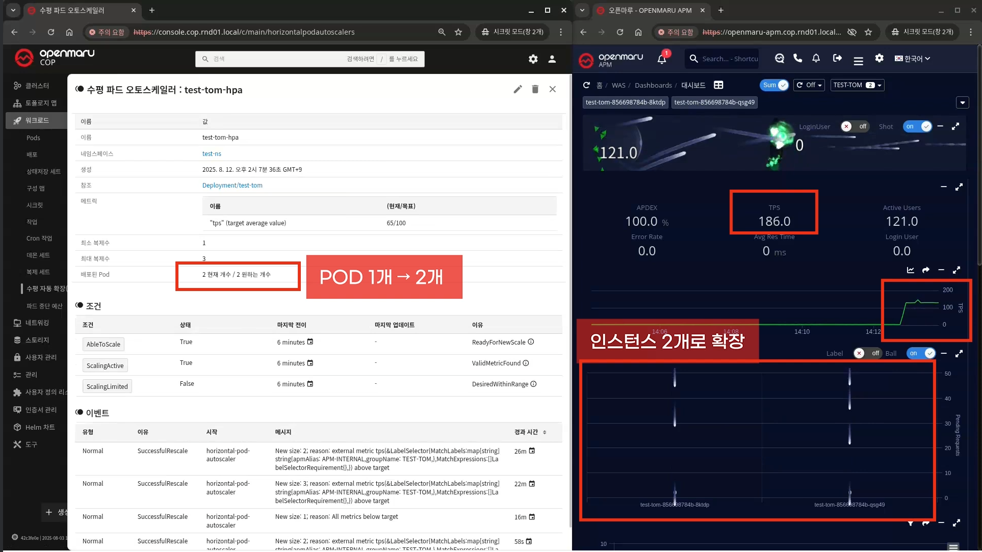따라서 TPS, 지연 트랜잭션, 액티브 유저 수 등 APM 기반 커스텀 매트릭을 활용하면 사용자 경험 중심의 보다 정교한 오토스케일링이 가능하다.