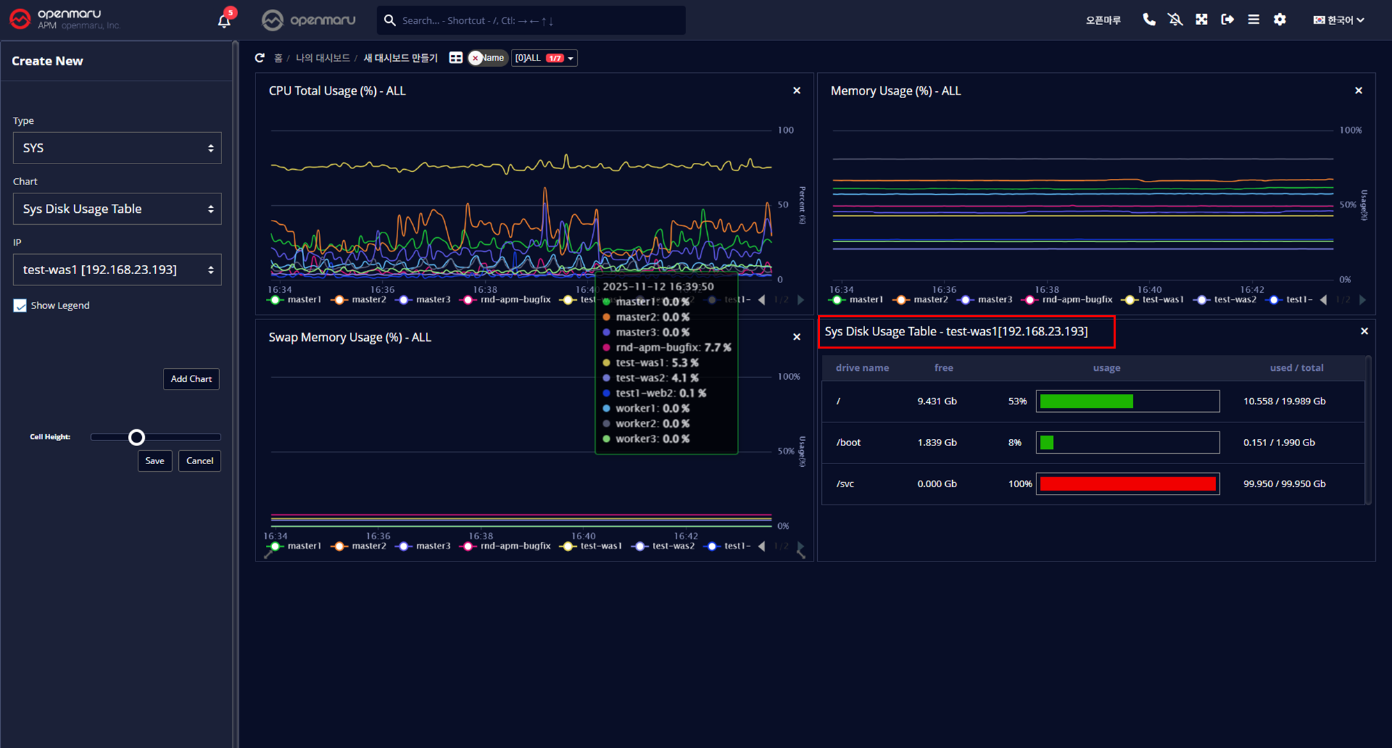 - SYS CPU 사용률 차트, 모든 노드 메모리 사용률, Swap 메모리 사용률 차트 추가