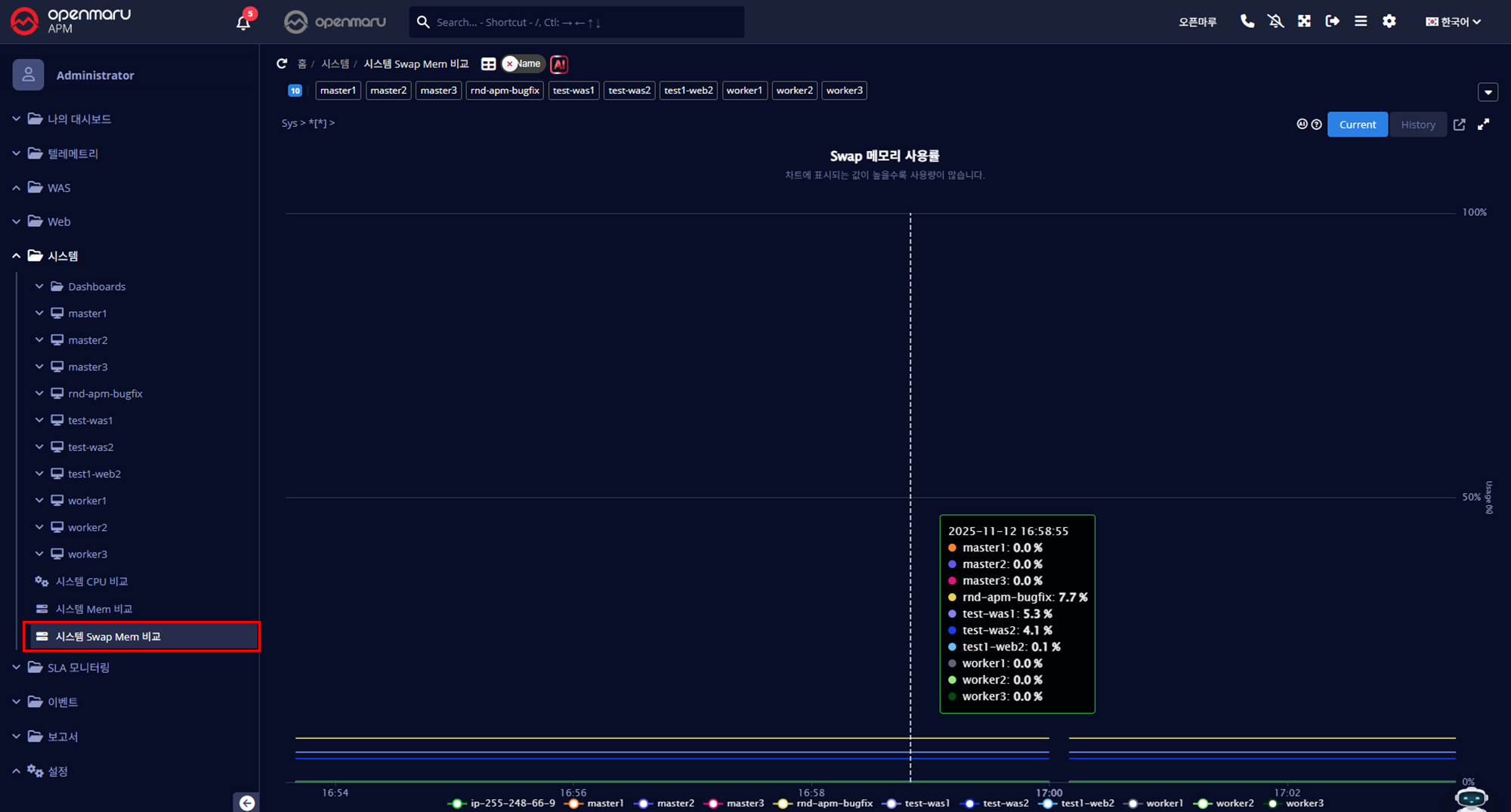 - 시스템 Swap 메모리 사용률 비교 차트 추가