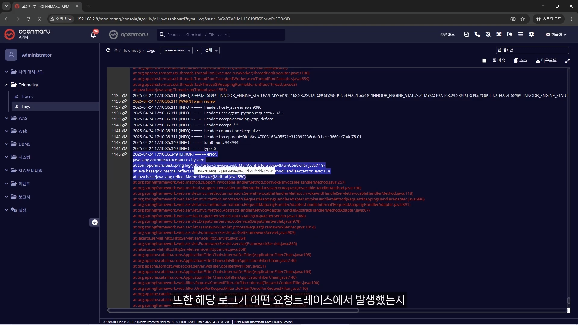 오픈 텔레메트리 통합(Trace, Log 관계 추적)
