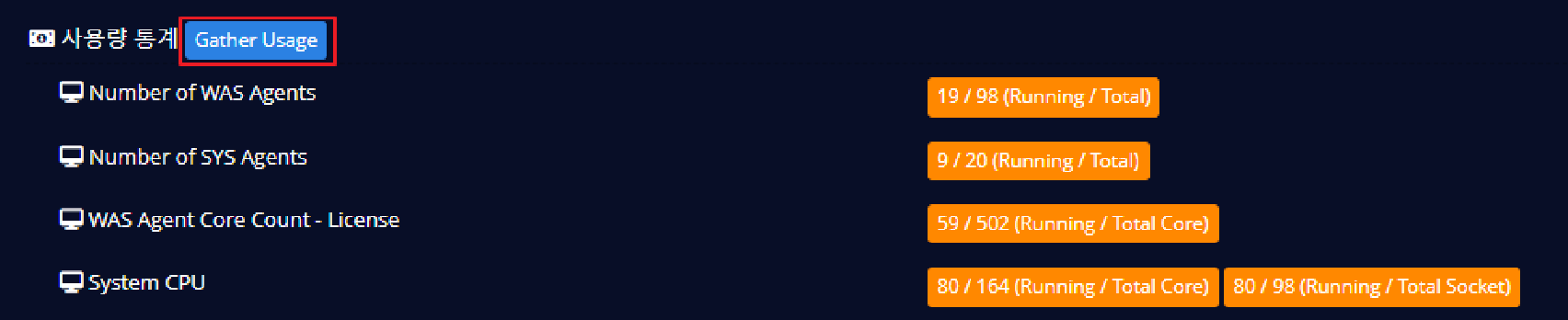 Gather Usage 버튼을 클릭 시 정보를 표시한다.