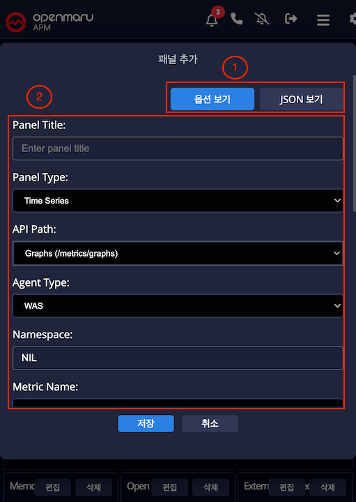 Openmaru 에서 기본적으로 제공하는 Telemetry 대시보드 나, 사용자정의 대시보드를 선택하여 모니터링 할 수 있습니다.
