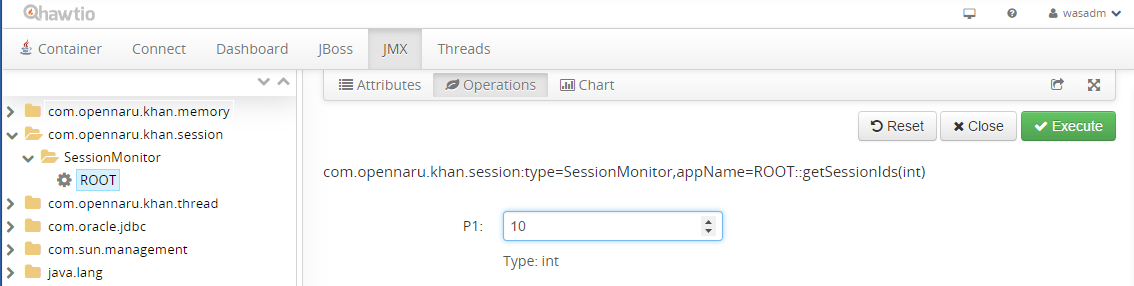 - P1에 세션 ID 를 입력한 후 ‘Execute’ 버튼을 클릭한다.