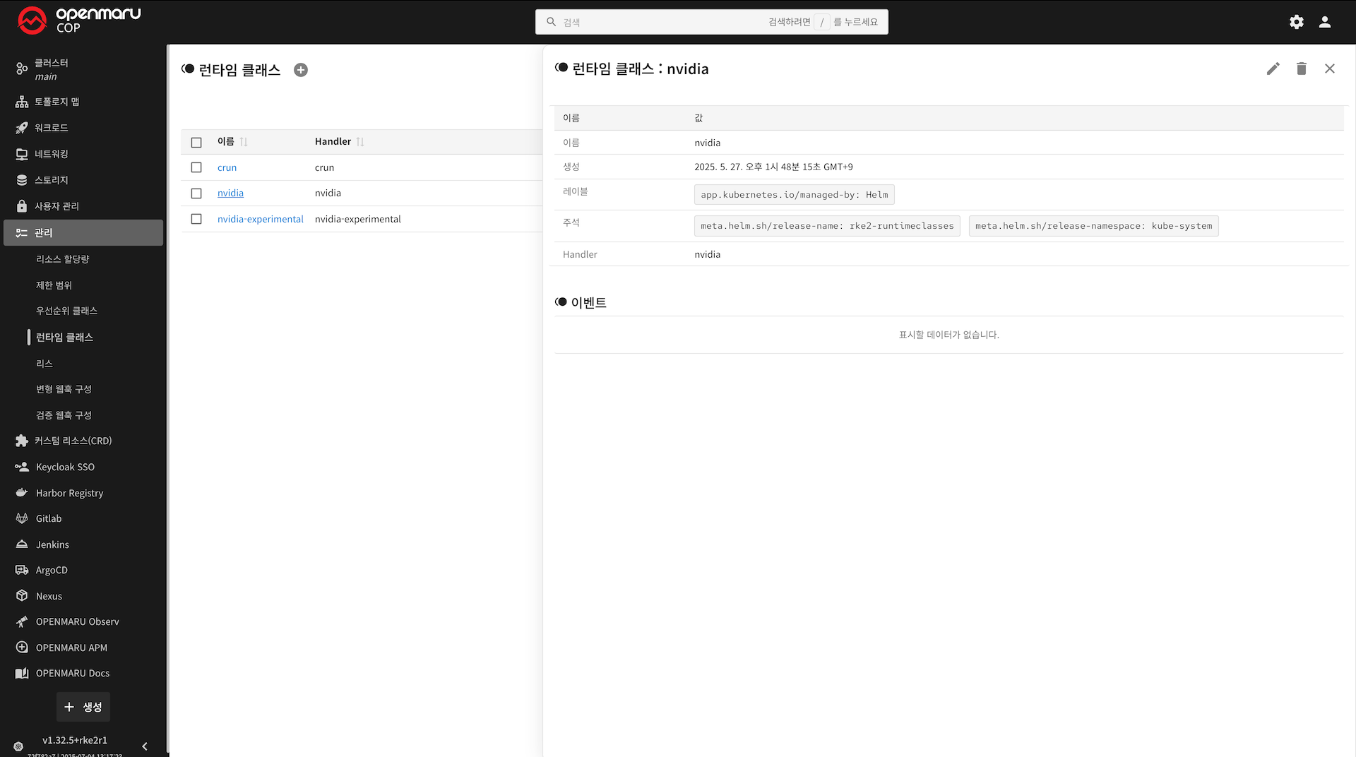 4. RuntimeClass 상세 화면
