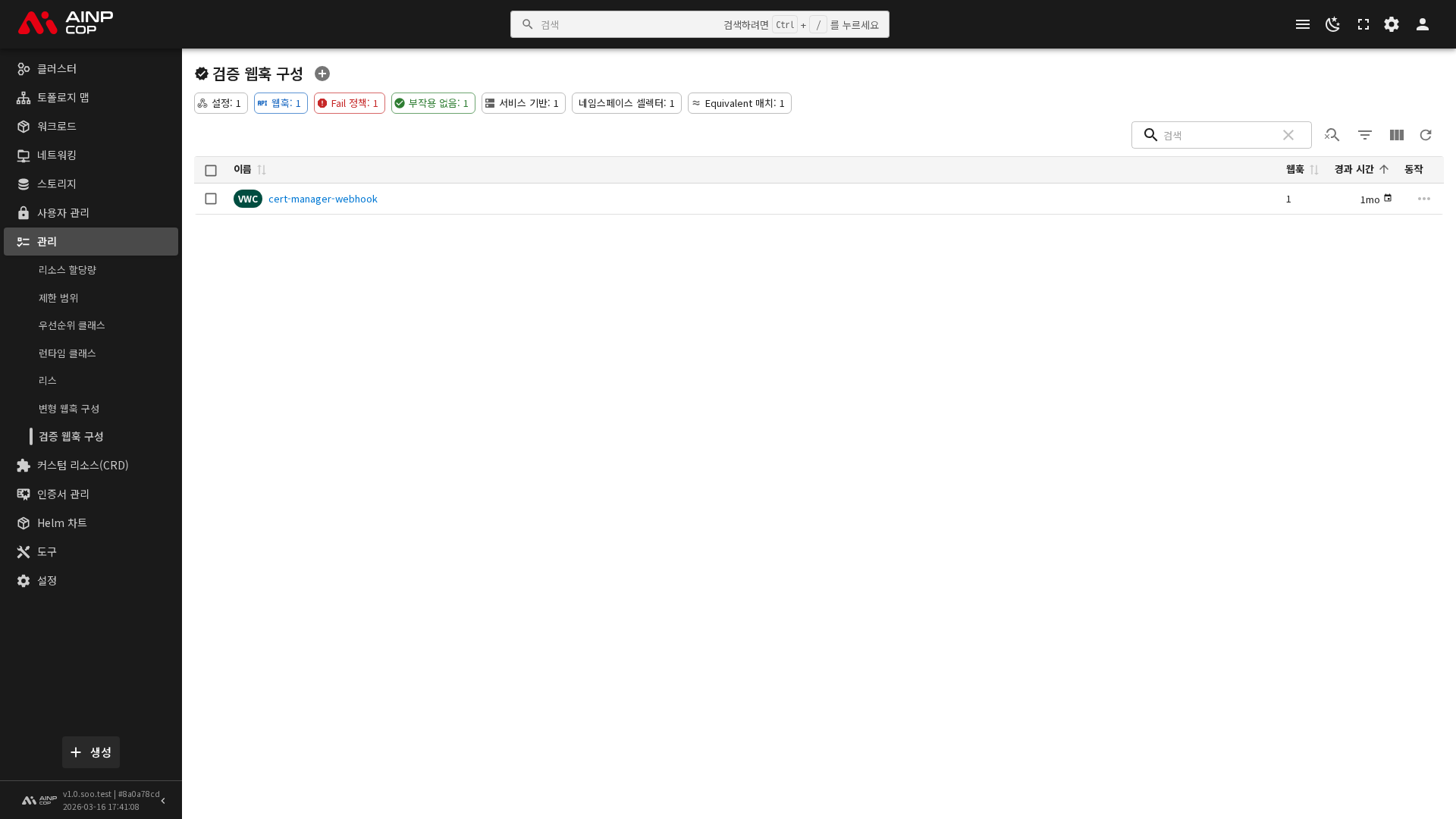 검증 웹훅 구성
