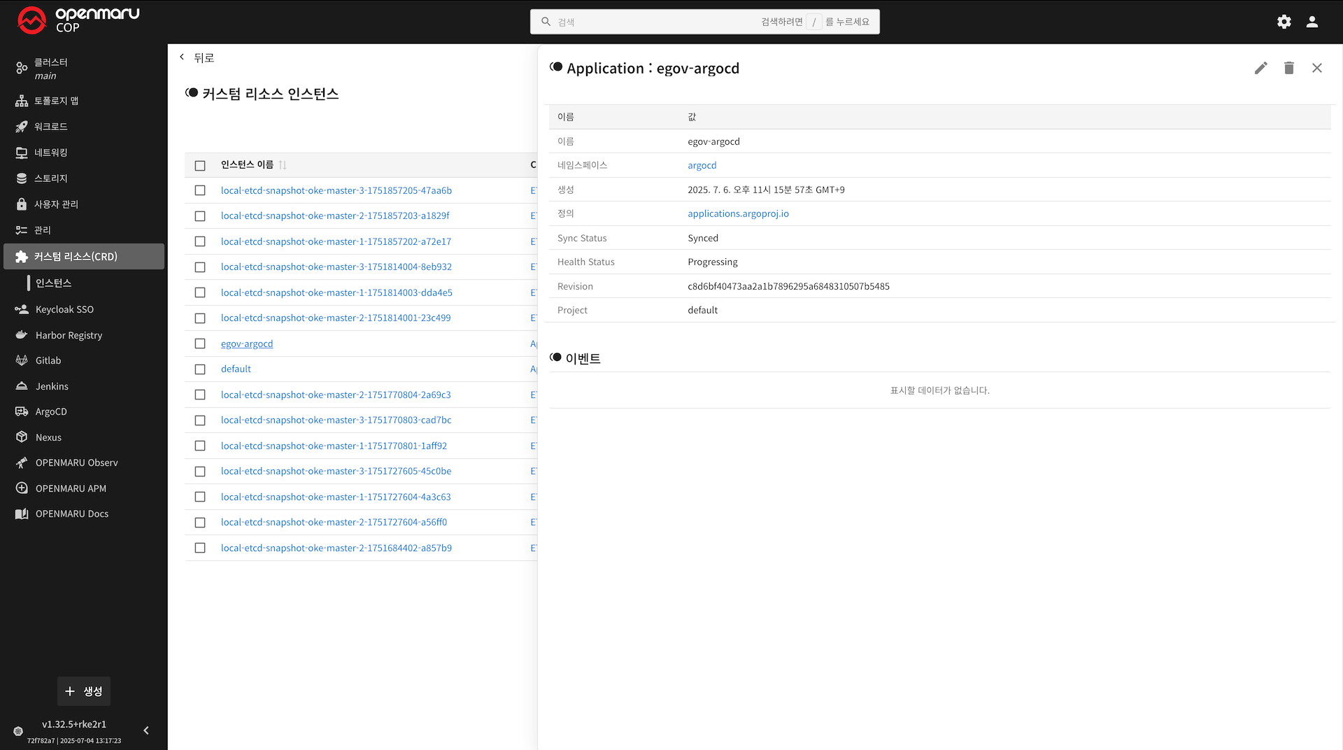 해당 화면에서는 현재 클러스터에 존재하는 Custom Resource 인스턴스들이 아래와 같은 정보와 함께 표시됩니다.