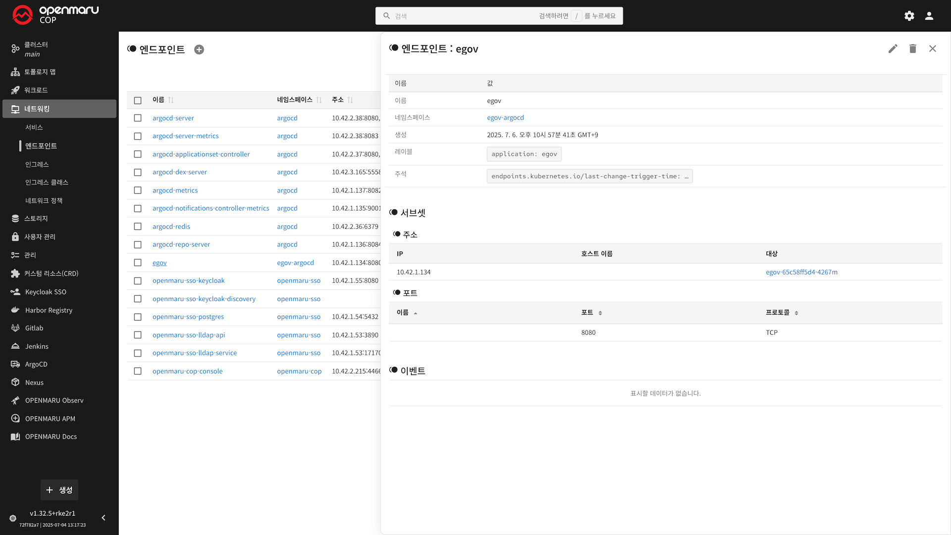 네임스페이스: 엔드포인트가 속한 네임스페이스를 표시합니다. 클릭 시 해당 네임스페이스로 이동합니다.