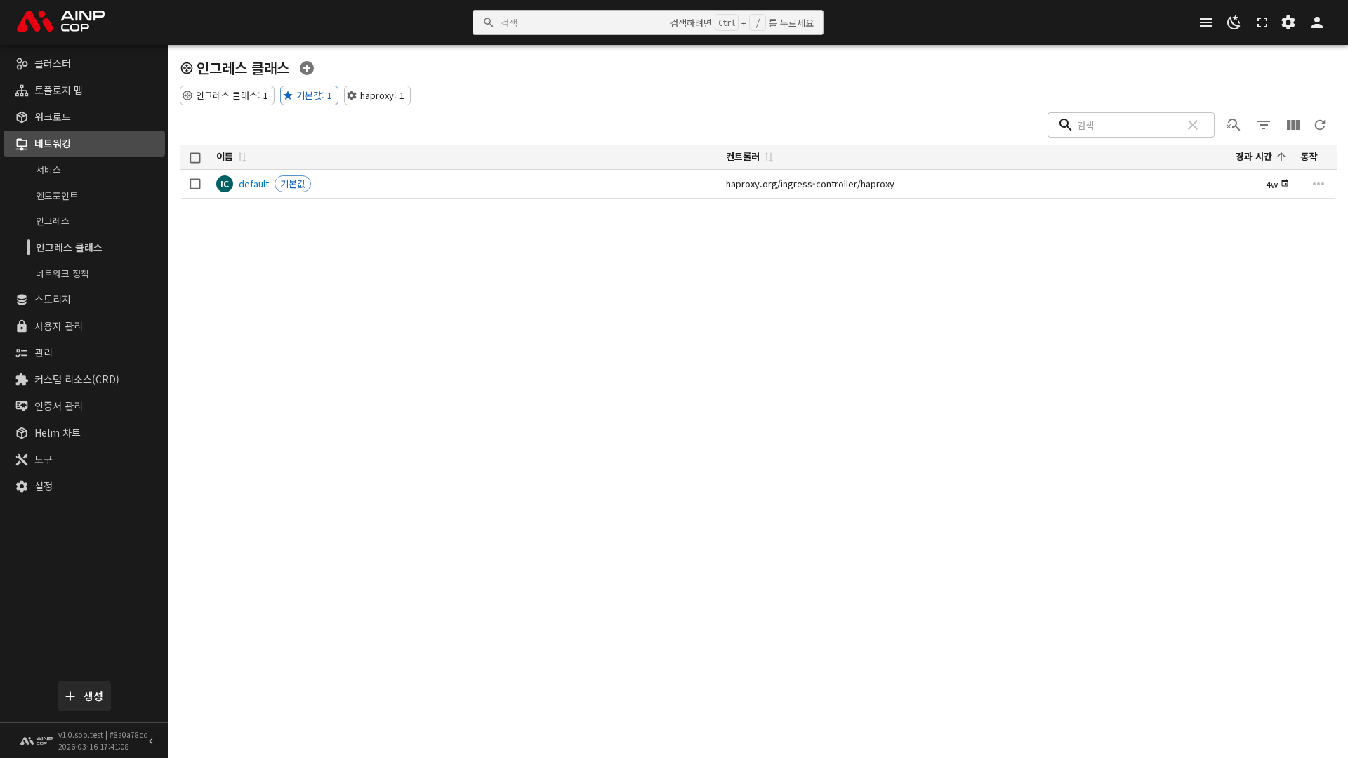 목록에서는 각 인그레스 클래스의 이름, 컨트롤러, 기본 여부를 확인할 수 있습니다. 기본(Default) 인그레스 클래스로 설정된 항목은 인그레스 리소스에서 별도로 클래스를 지정하지 않았을 때 자동으로 적용됩니다.