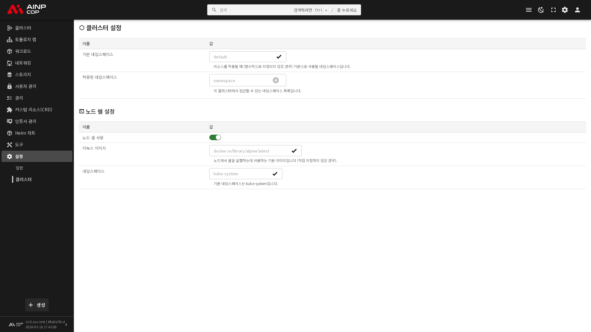 - 빈 값: 허용 네임스페이스가 설정되지 않으면 모든 네임스페이스가 표시됩니다 (RBAC 권한에 따라 접근 가능 여부가 결정).