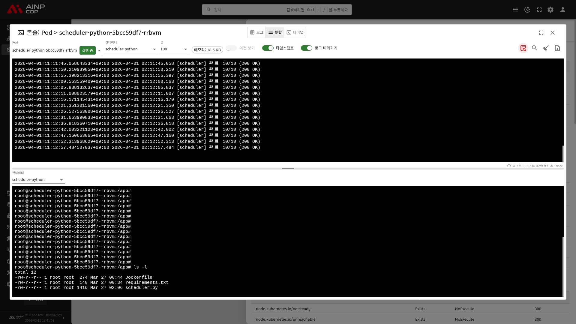 | Pod | 실행 중인 파드 수 / 요청된 파드 수 (예: 1/1) |