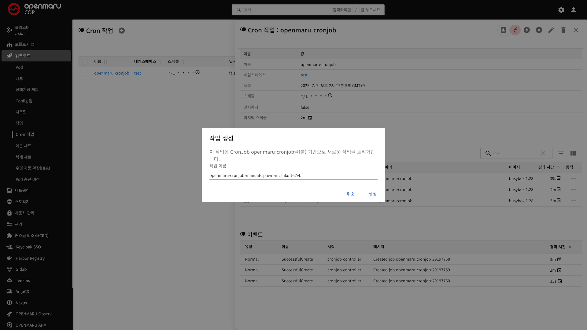 openmaru-cronjob) - 네임스페이스: Cron 작업이 속한 네임스페이스입니다.