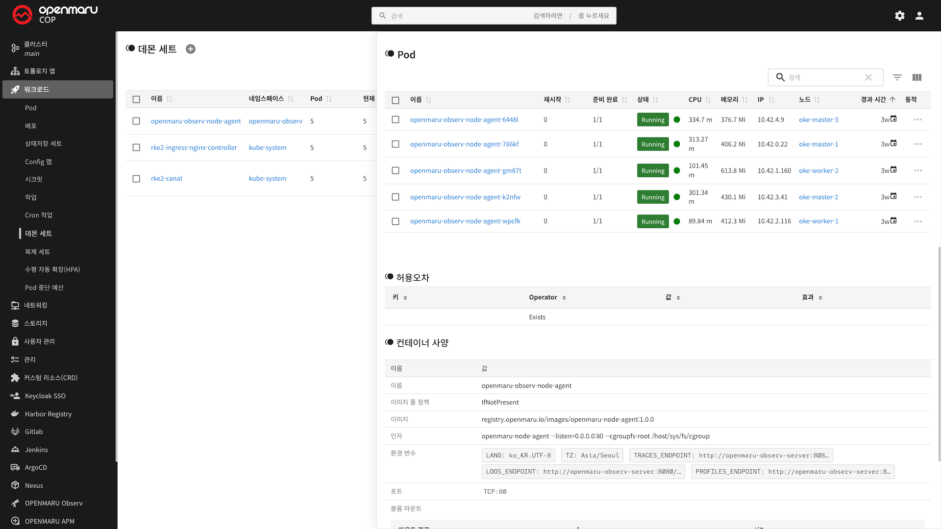openmaru-observ-node-agent) - 네임스페이스: 데몬 세트가 속한 네임스페이스입니다.