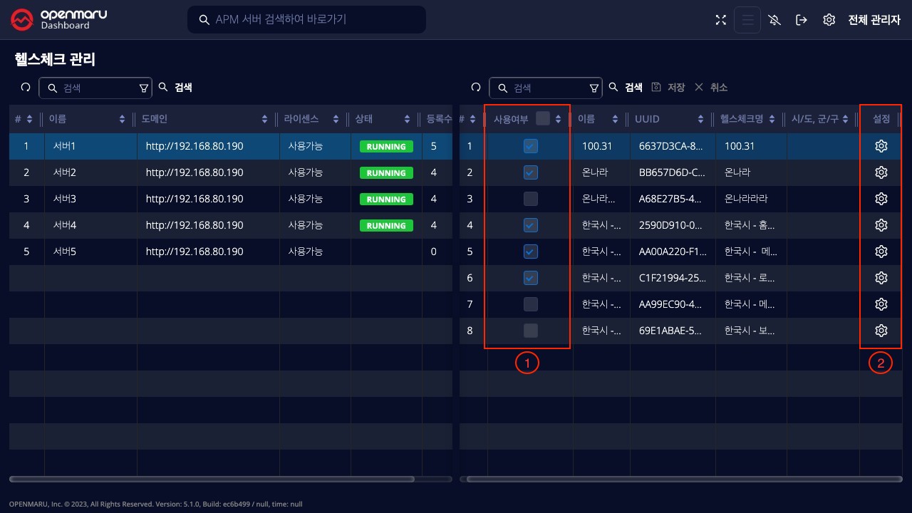 OPENMARU APM 에서 관리되고 있는 헬스체크 목록 중 OPENMARU APM