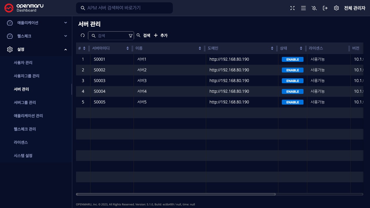 서버 관리 페이지에서는 서버의 등록, 수정, 삭제가 가능하다.