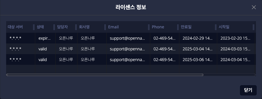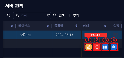 서버 관리 페이지에서는 서버의 등록, 수정, 삭제가 가능하다.