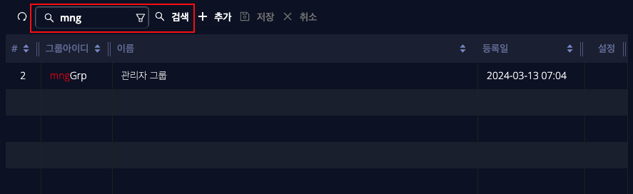 검색을 통해서 특정 데이터만 확인할 수 있다.