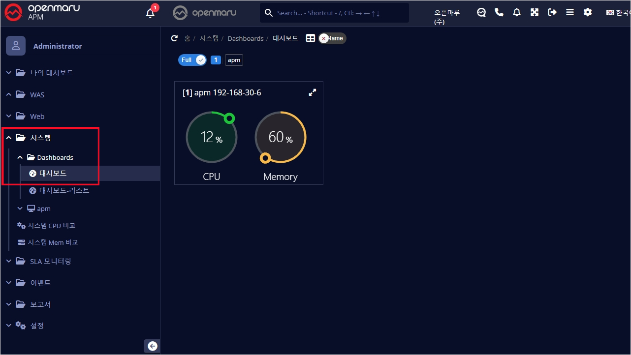 | 사용자(PC) | OPENMARU APM Server | 80 | APM 웹모니터링콘솔 |