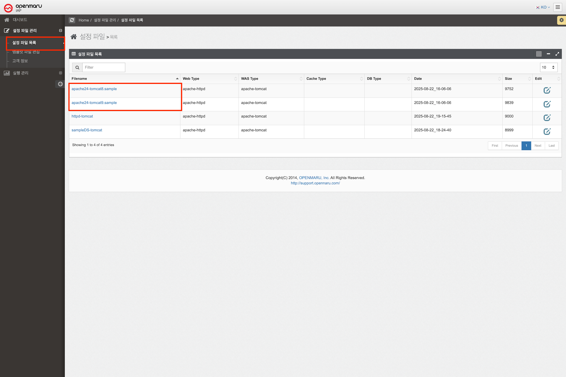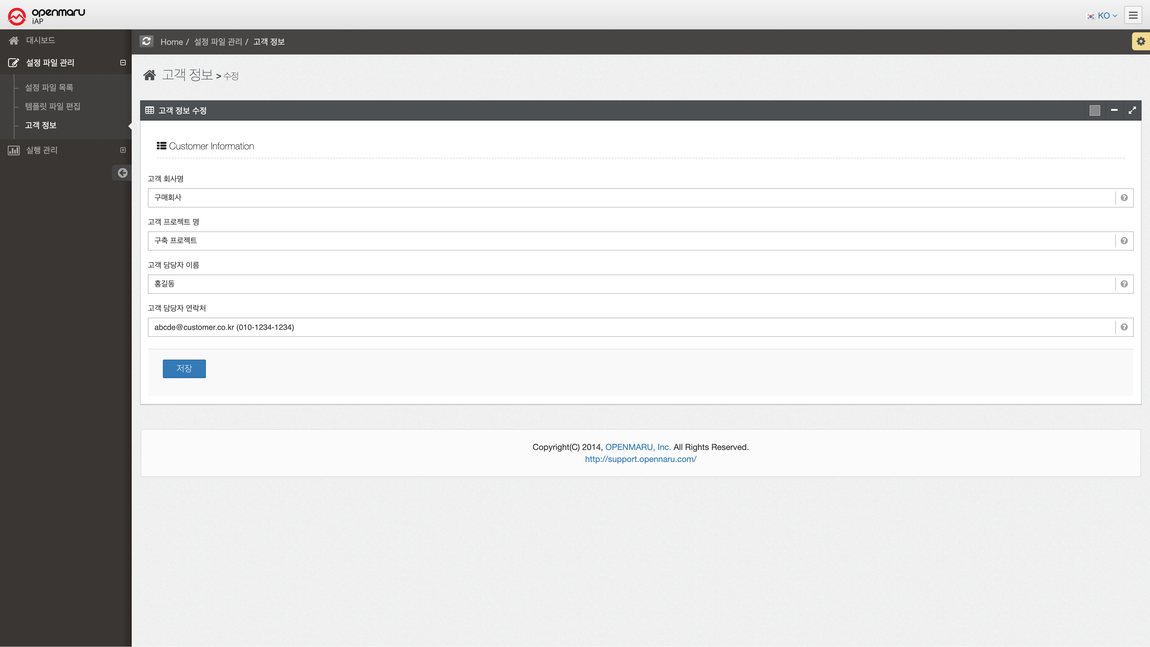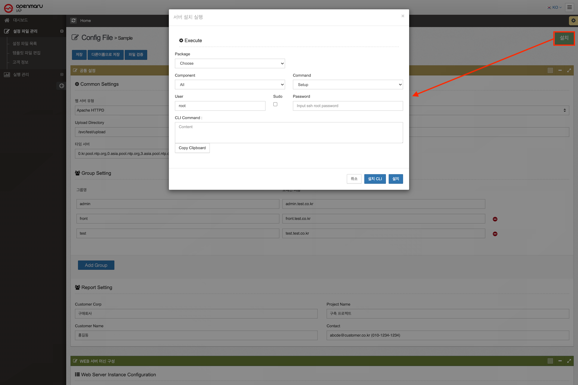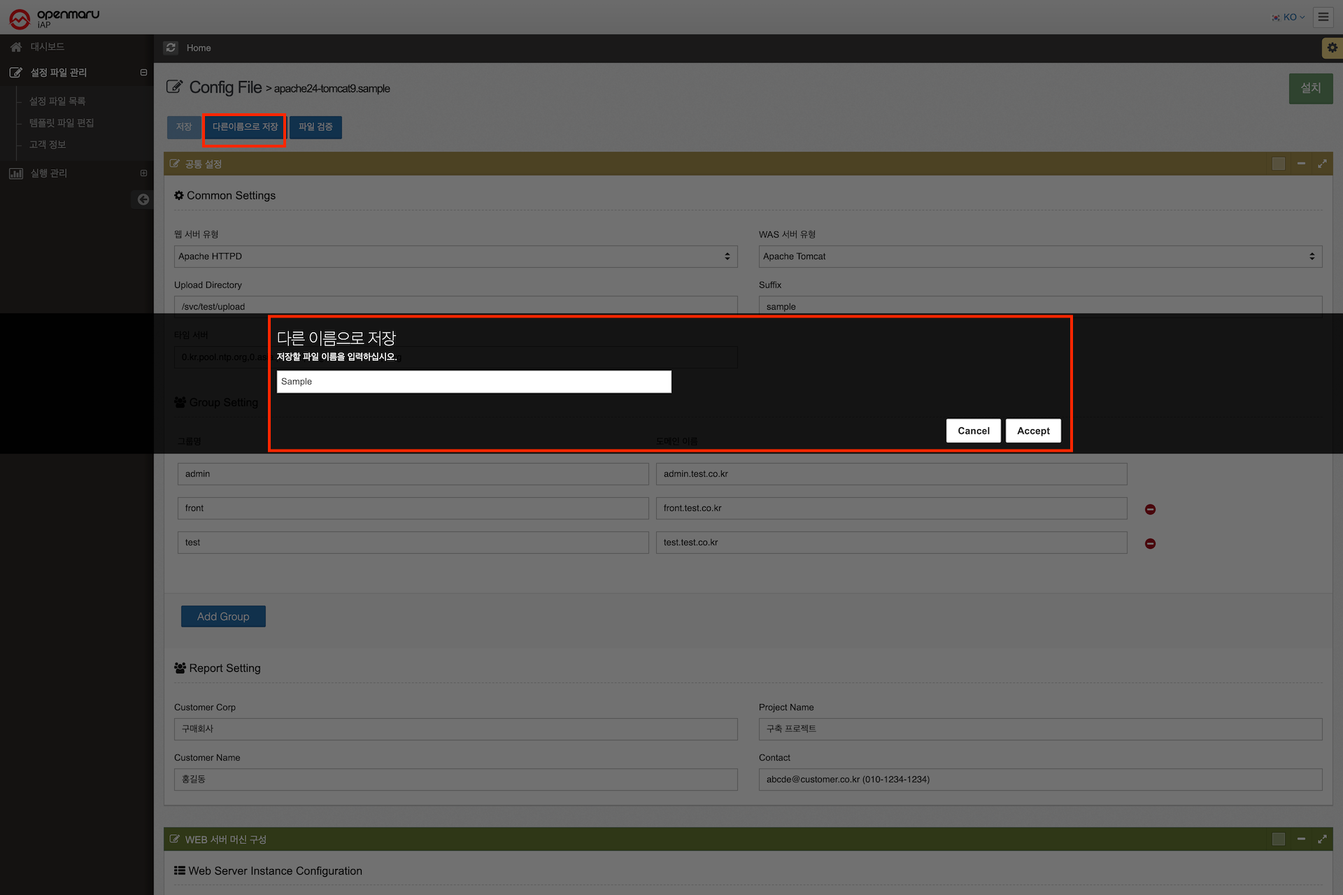 OPENMARU iAP의 설치에 사용되는 설정 파일의 템플릿을 사용자가 설치 환경에 맞게 설정 내용을 직접 변경할 수 있는 편집 기능을 제공한다.