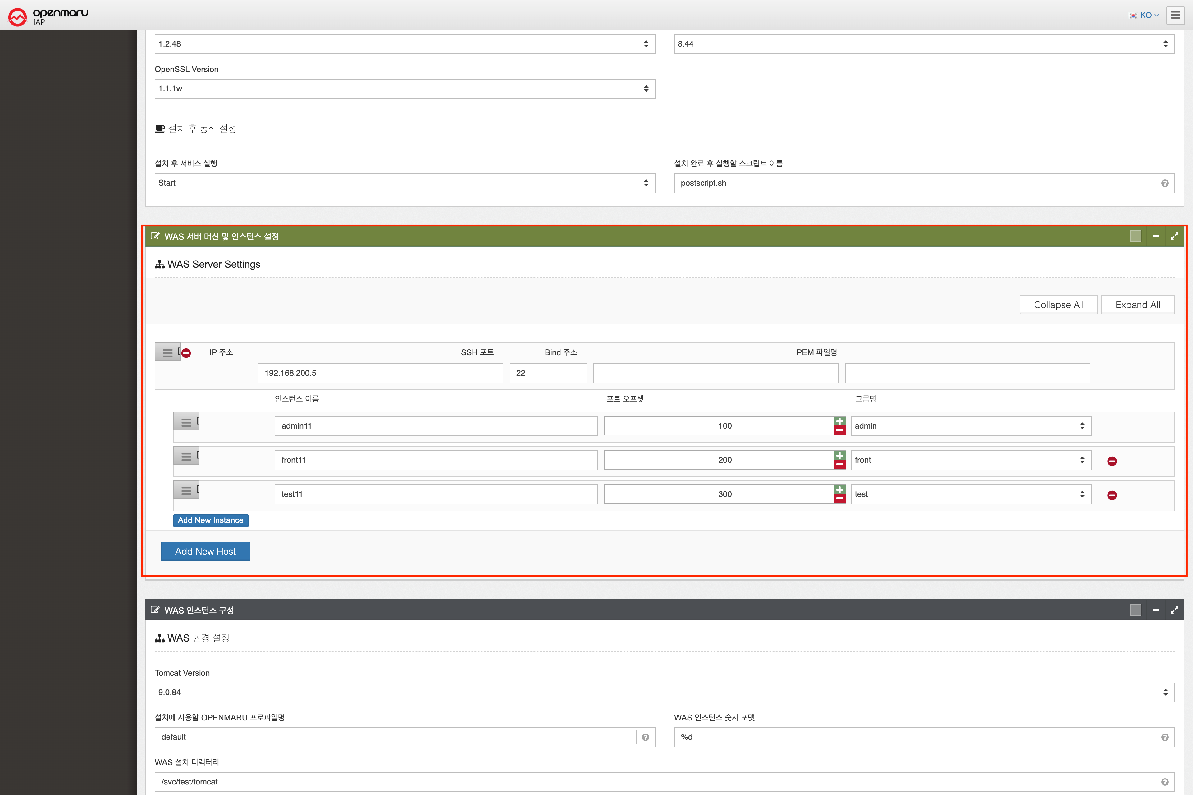 | WAS 인스턴스 설정 | |
