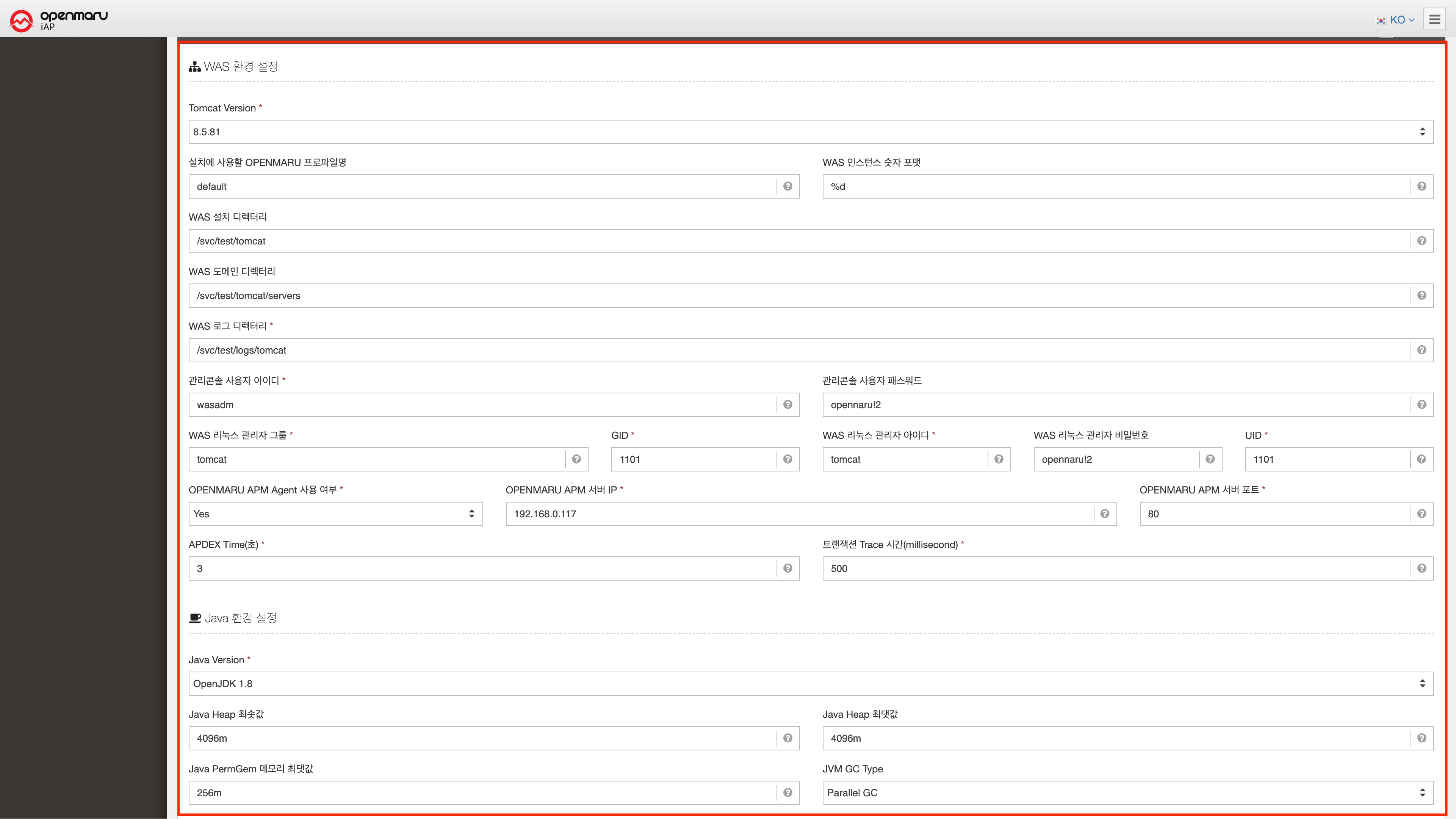 | OPENMARU APM 서버 IP | OPENMARU APM 서버 사용 시 , 서버의 IP 를 입력한다. |
