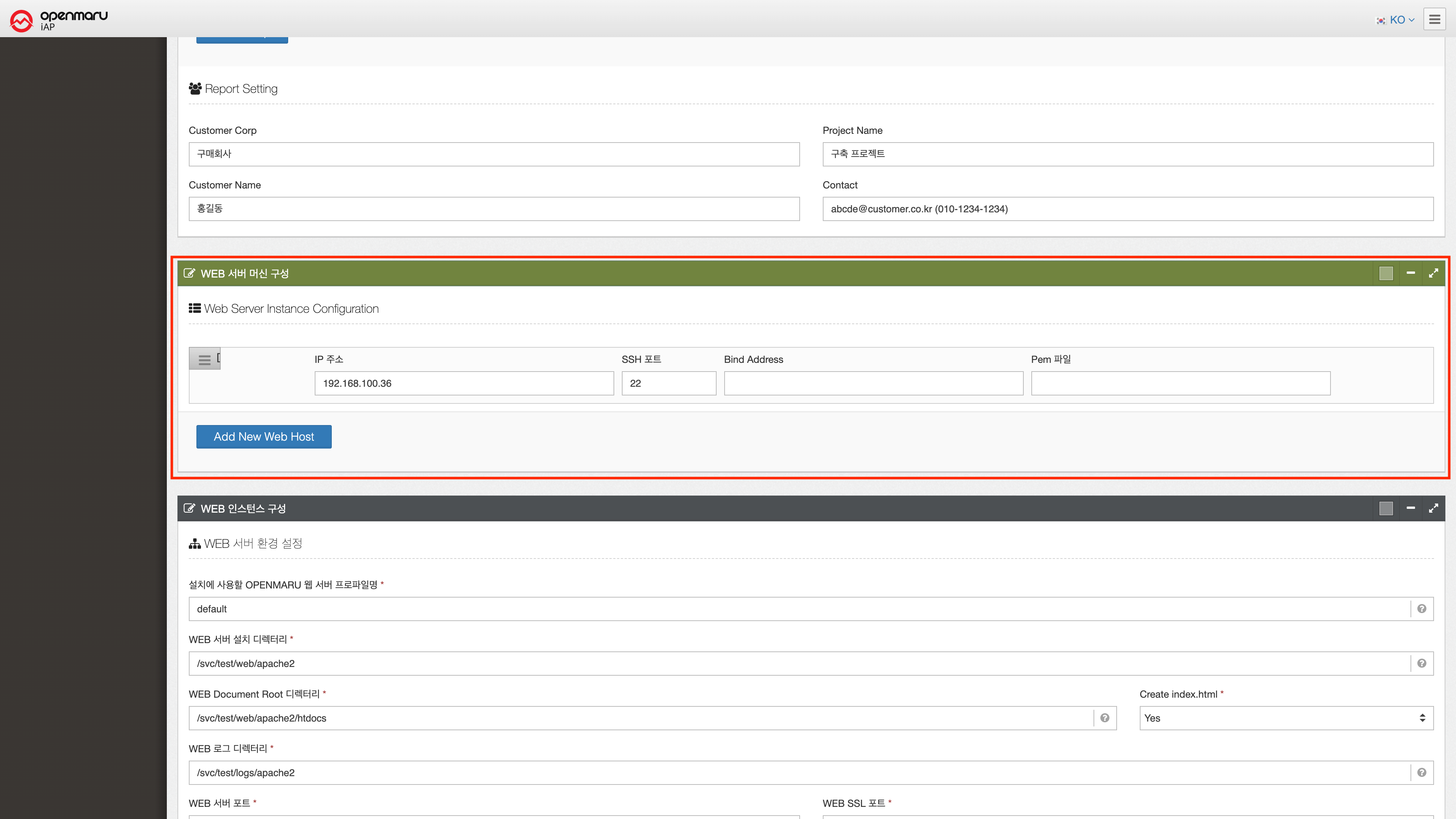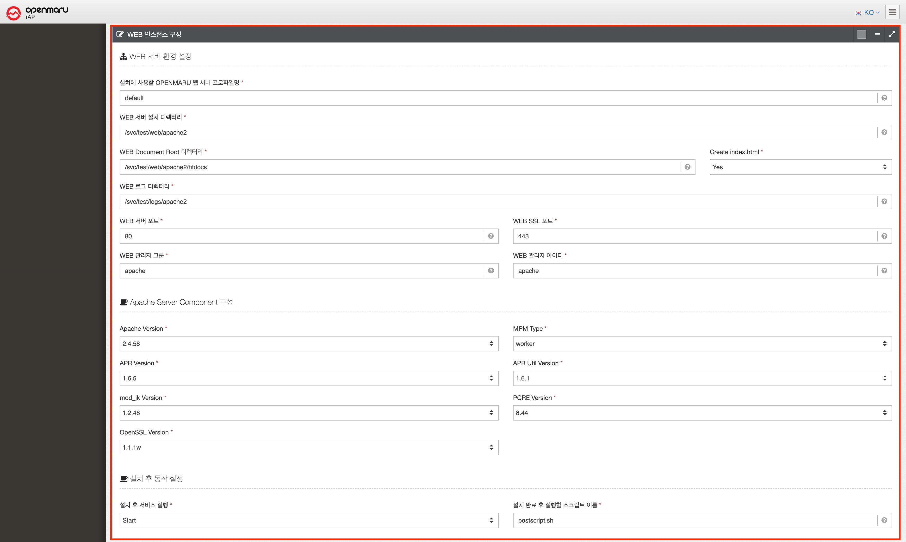 | 설치에 사용할 OPENMARU 웹서버 프로파일명 | |