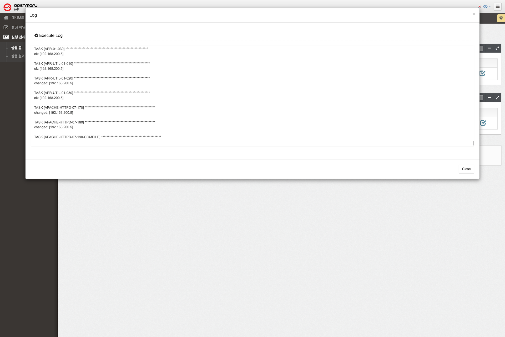 action --package ApacheHTTPD --component packages --command setup --user root --password openmaru --silent true --print true --locale ko --inventory openmaru-apache-tomcat