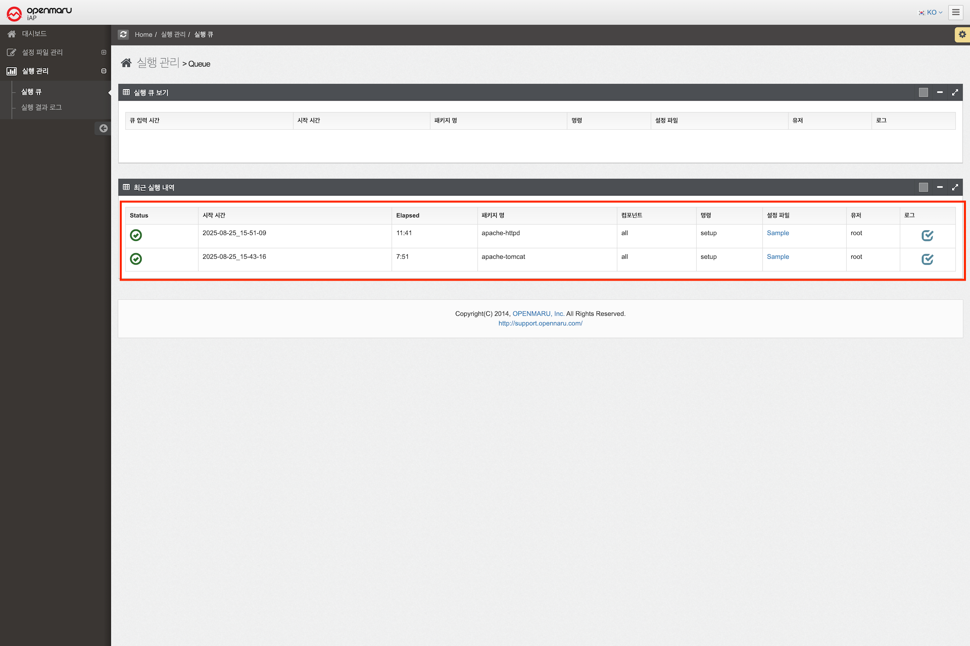 실행 큐 내 설치 완료 확인
