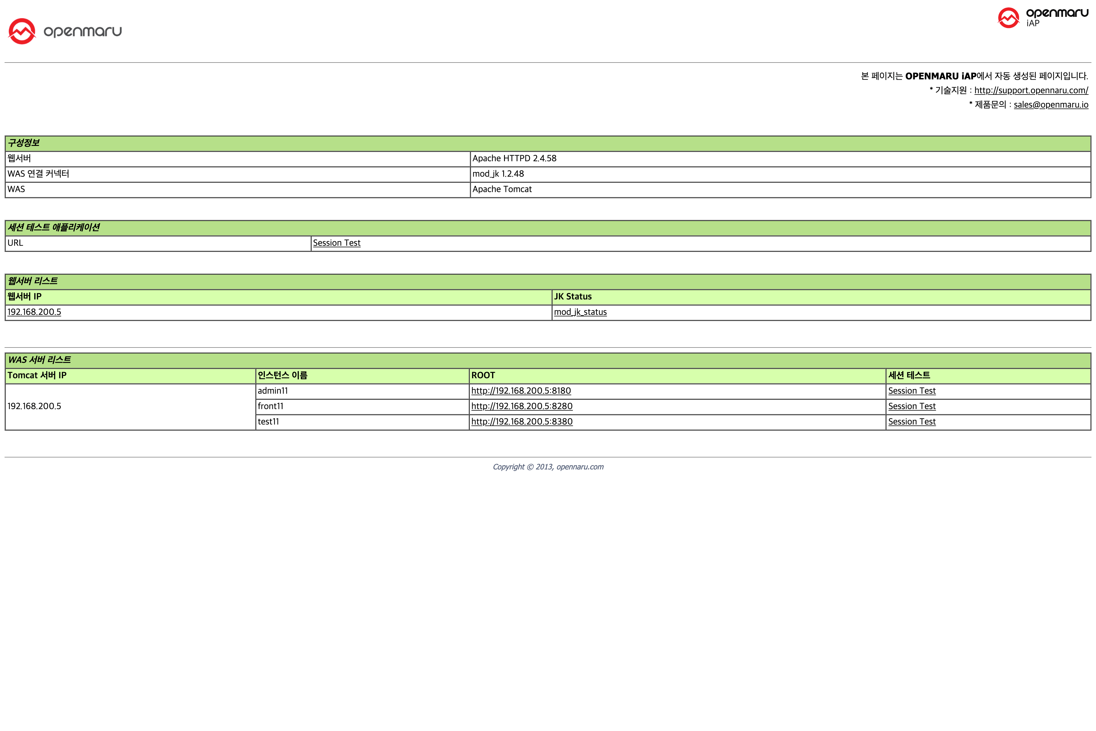 mod_jk status 클릭 시 mod_jk의 정보에 관한 페이지가 표시된다.