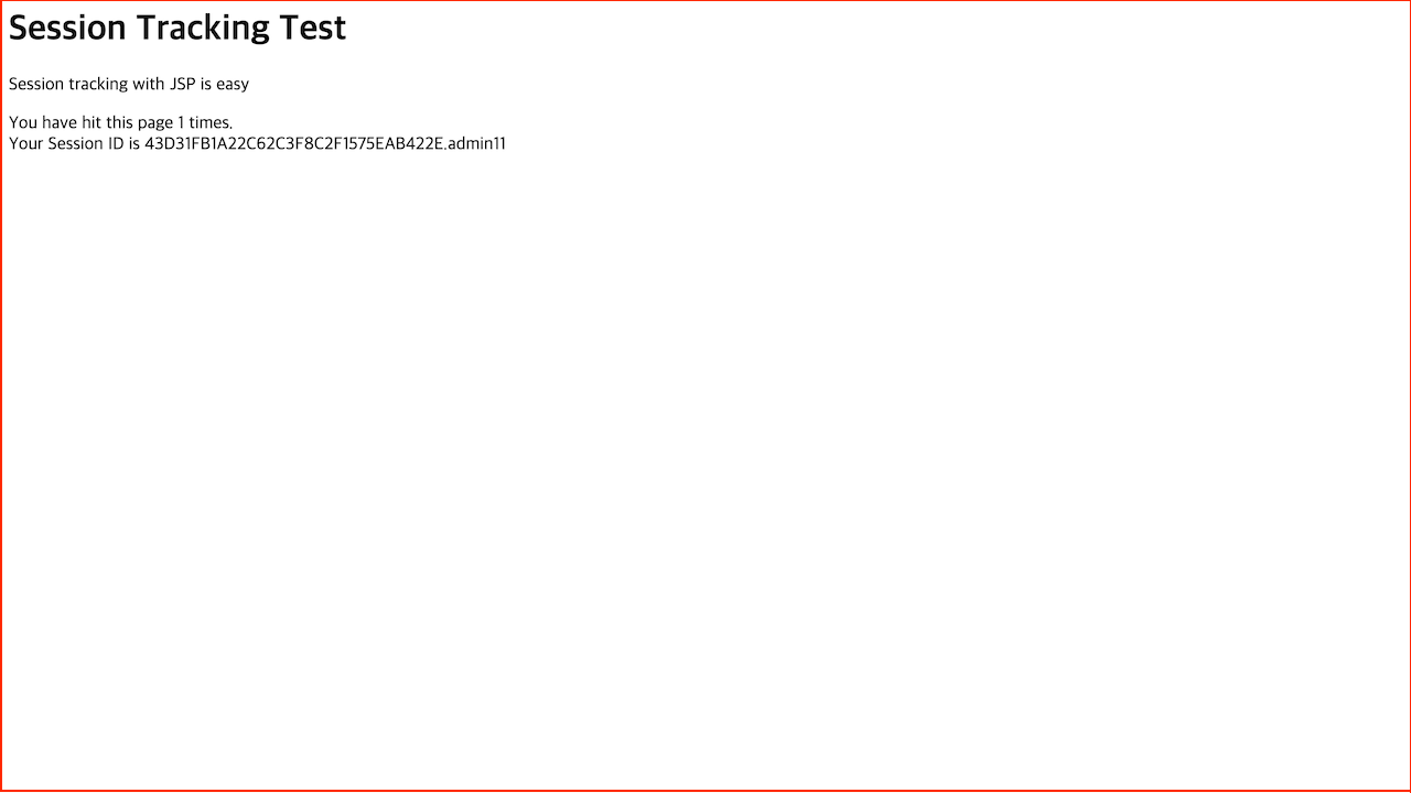 생성된 페이지에서 Session Test를 클릭 시 아래와 같은 Session Tracking Test 페이지가 표시된다.