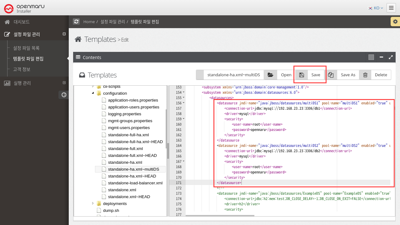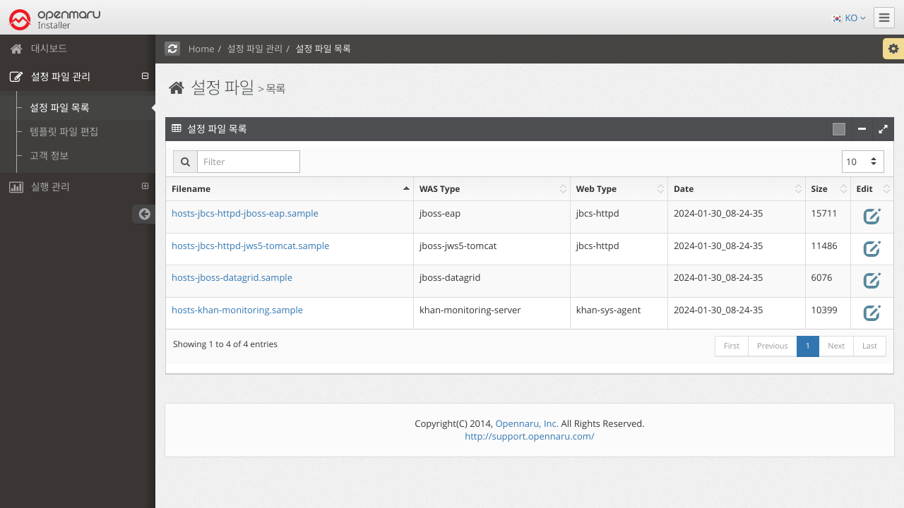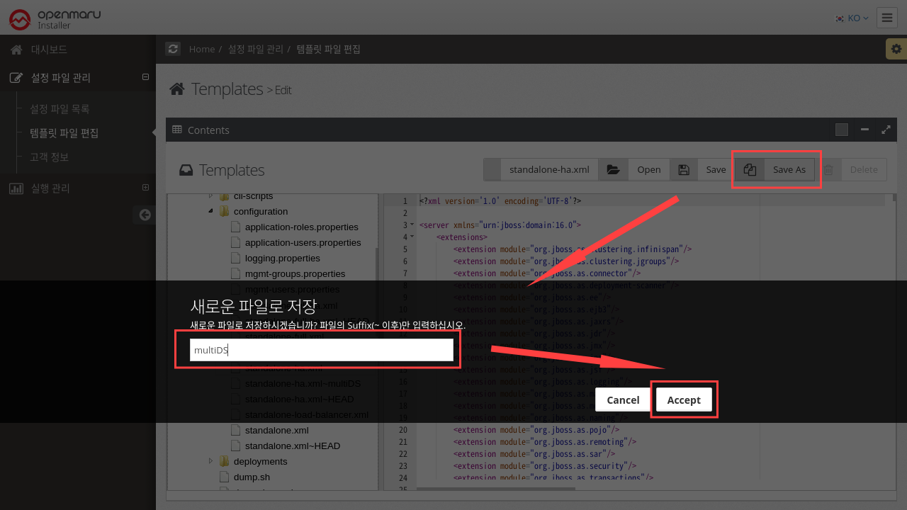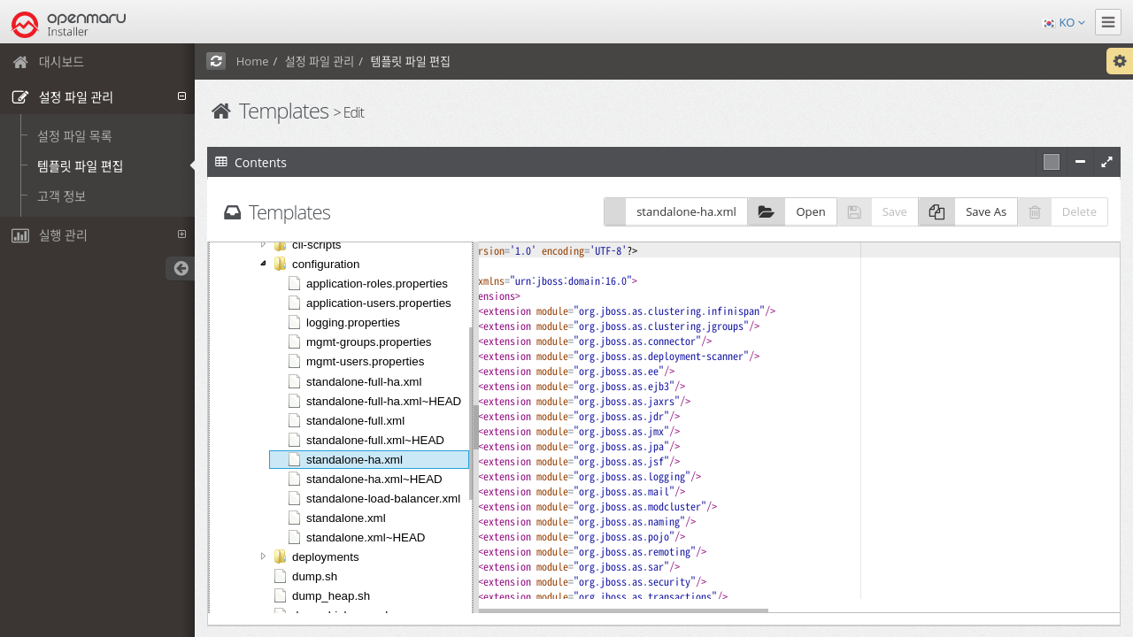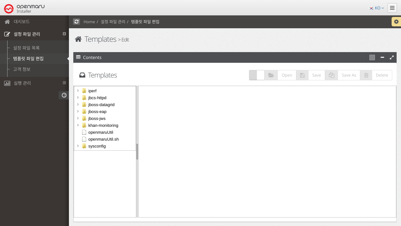OPENMARU Installer의 설치에 사용되는 설정 파일의 템플릿을 사용자가 설치 환경에 맞게 설정 내용을 직접 변경할 수 있는 편집 기능을 제공한다. 위 설정파일에서 제공하지 않는 옵션등 다양하게 활용할 수 있다.