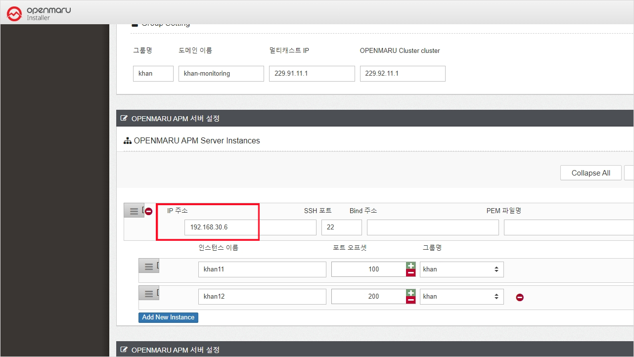 - 포트 오프셋 : APM 인스턴스에 할당할 포트 오프셋(8080 포트에 더함, ex) 100 = 8180)