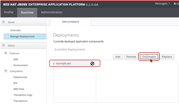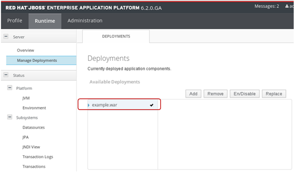 [standalone@localhost:9999 /] deploy /EAP6book/download/example.war