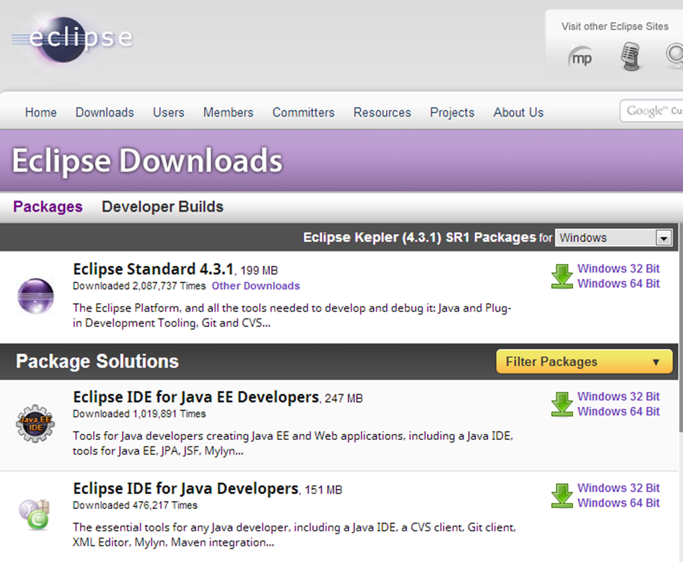 Eclipse 다운로드 페이지(http://www.eclipse.org/downloads/)에서 ‘Eclipse IDE for Java EE Developers’를 다운로드 받는다. 대부분 독자들의 개발 환경은 Windows운영체제를 사용하기 때문에 Windows 운영체제에서 설치하는 방법을 설명한다.