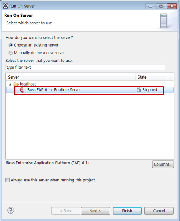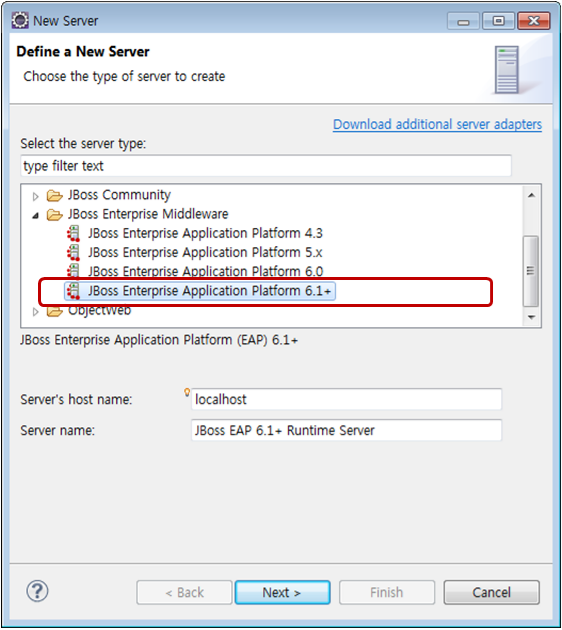 다음 표를 참고하여 JBoss EAP버전과 Eclipse 지원 버전을 확인하여 해당 버전에 맞는 JBoss Tools 버전을 선택한다. 최신 버전인 Eclipse 4.3 Kepler를 사용하면 JBoss Tools 4.1 버전을 설치하면 된다. JBoss Developer Studio는 레드햇에서 제공하는 Eclipse 기반 개발환경으로 JBoss Tools가 포함된 제품이다.