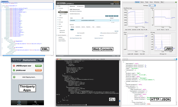 관리 자원들은 JBoss EAP 6 시작시 설정 파일을 바탕으로 구축되어 관리 인터페이스를 통해 자원에 접근할 수 있다. 또, 관리 자원이 변경되었을 경우에는 설정 파일에 변경사항이 반영되고 관리된다.