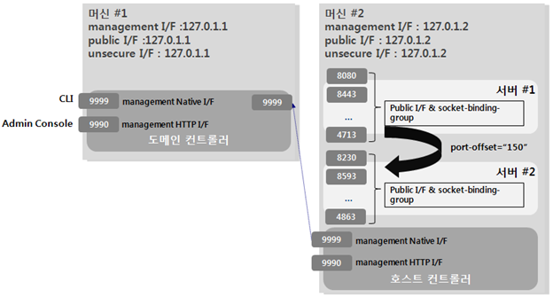 - HTTP 매니지먼트 엔드 포인트 HTTP 프로토콜을 이용하여 애플리케이션 서버의 관리 레이어에 접속하기 위한 엔드 포인트. 관리 콘솔에서 사용.