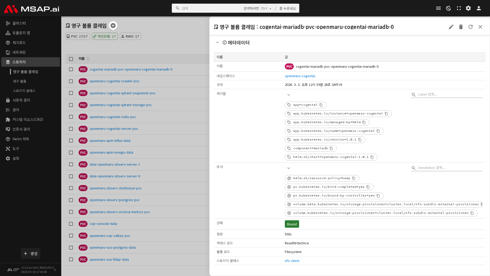 - 스토리지 클래스: 사용 중인 스토리지 클래스 이름