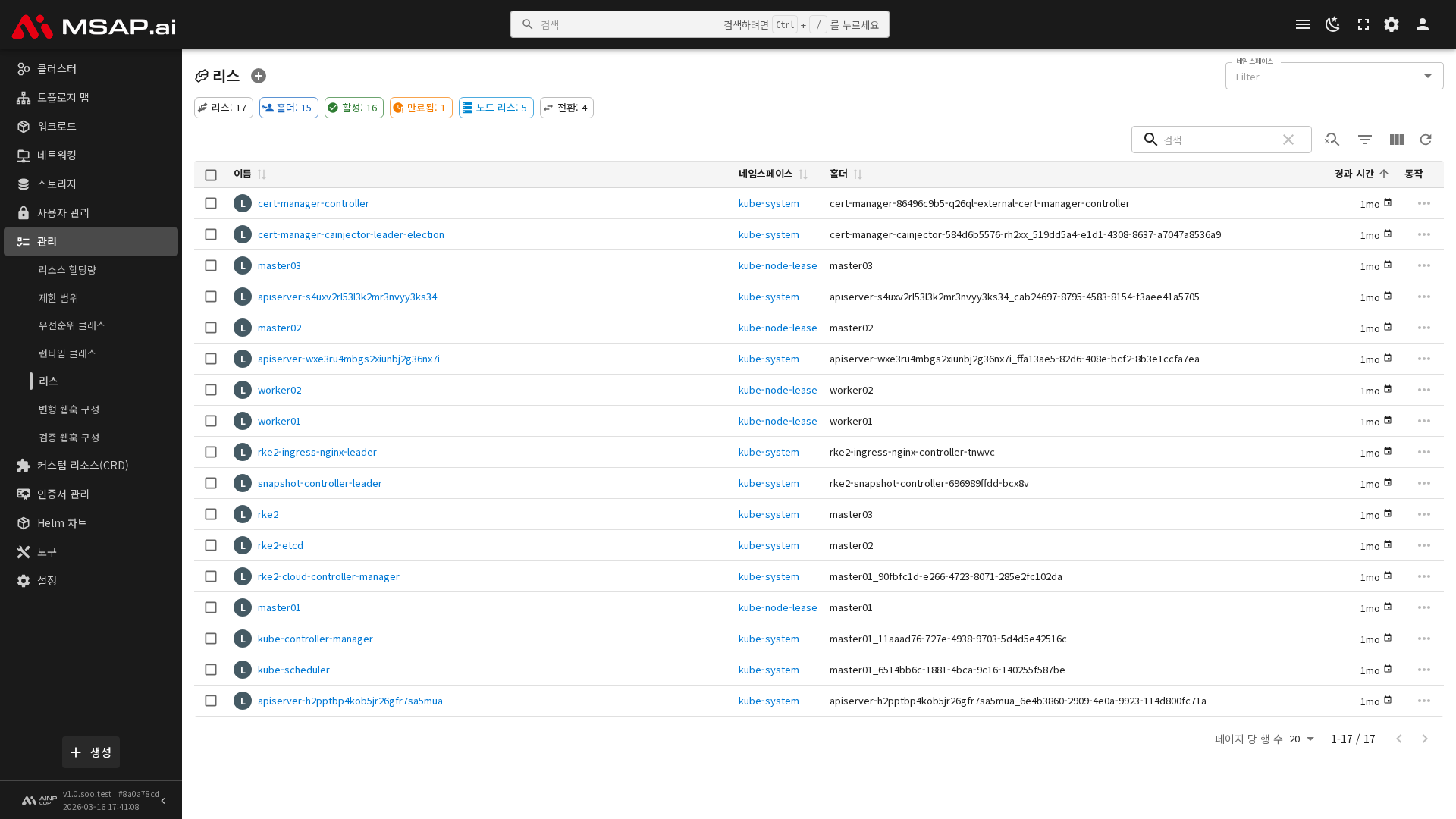 - 갱신 시간(Renew Time): 마지막으로 리스가 갱신된 시간입니다.