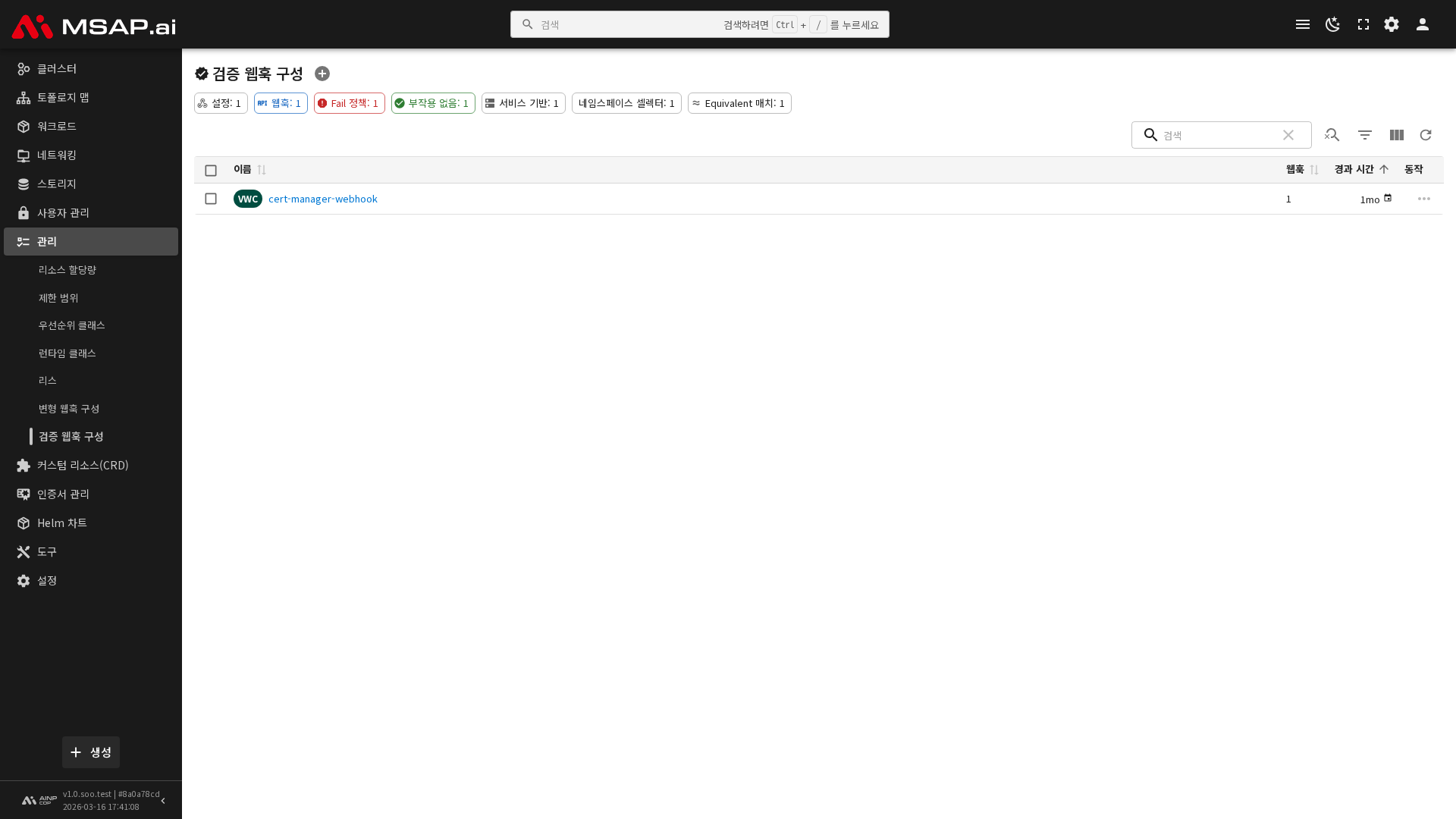 검증 웹훅 구성