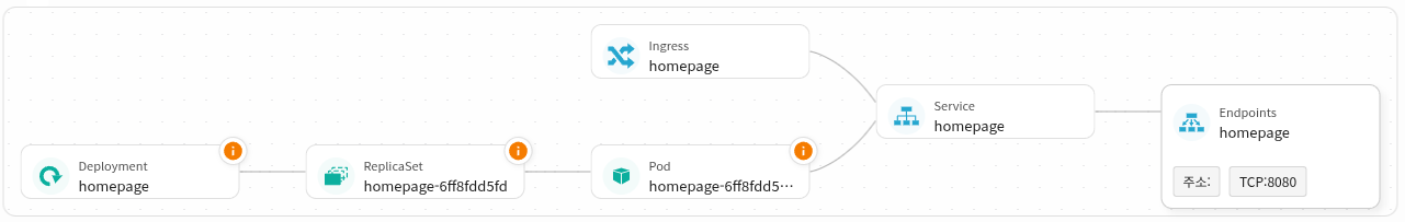 | DEPLOYMENT | 애플리케이션 배포 이름 | homepage |
