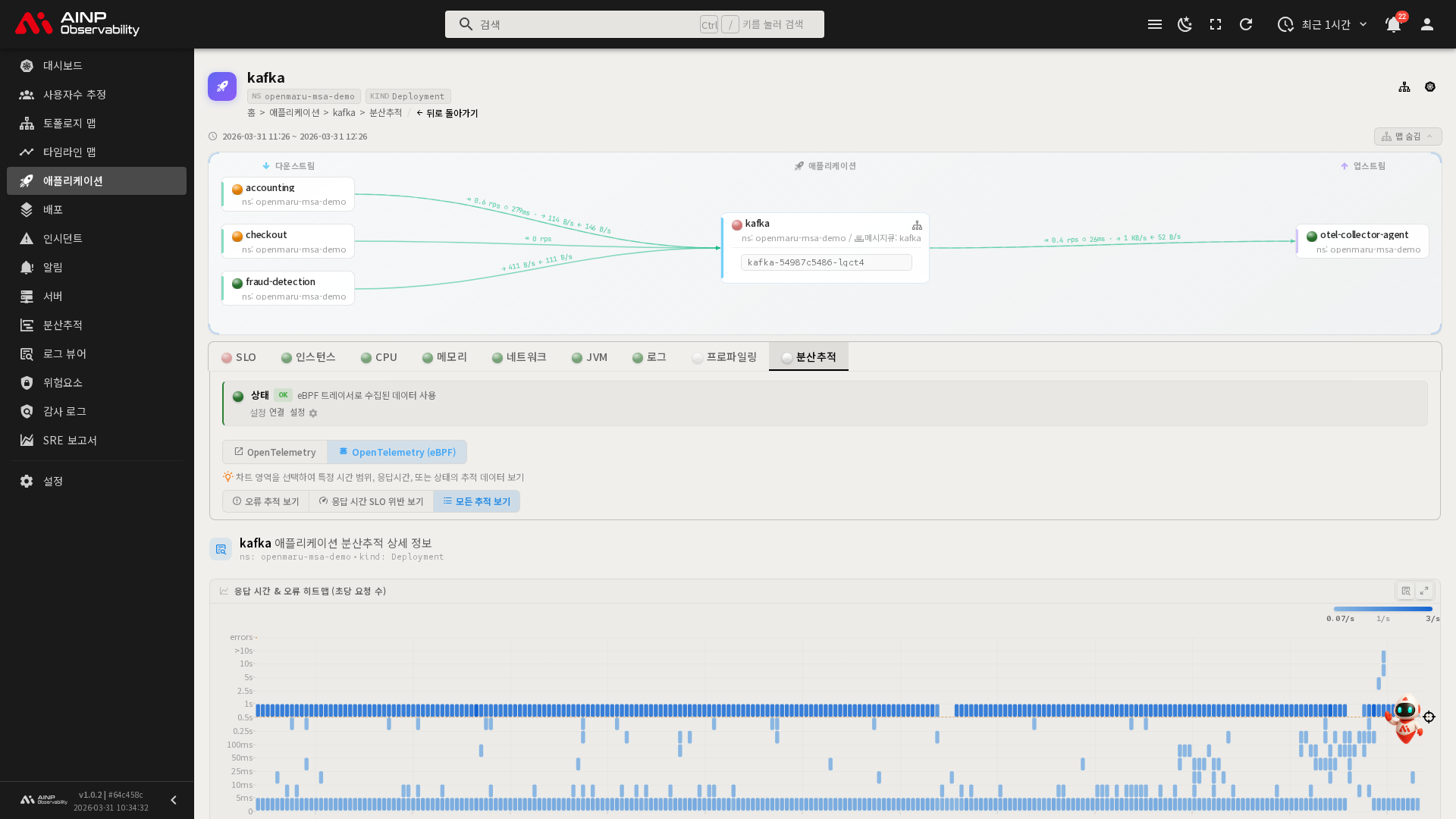 참고: Kafka는 별도 탭이 아닌 분산추적 탭에서 Kafka 프로토콜 추적을 통해 모니터링됩니다.