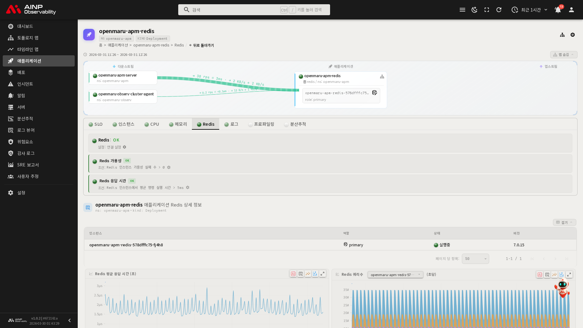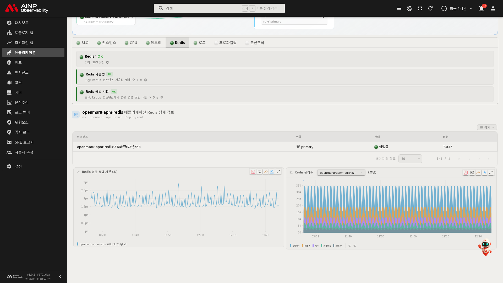 Redis, KeyDB, Valkey 등 캐시 서비스의 성능을 모니터링합니다. 응답 시간 및 오류 히트맵(Heatmap)을 함께 제공합니다.