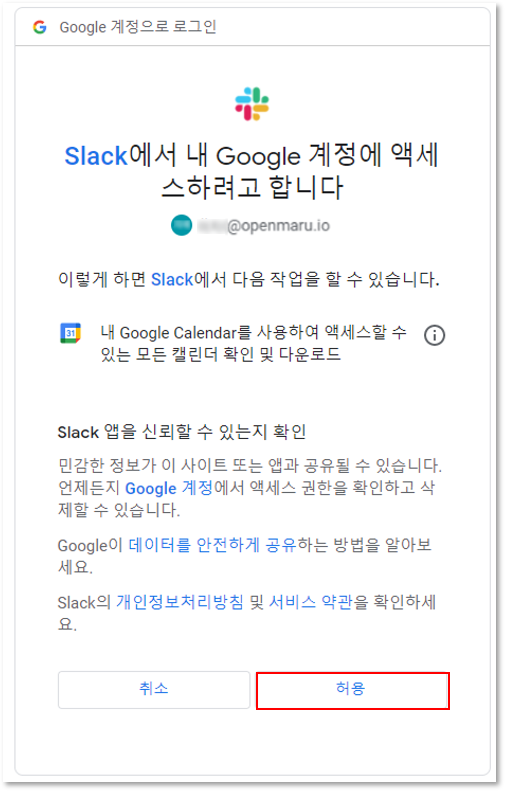 연결하고자 하는 Google 계정을 선택하고 허용 한다.