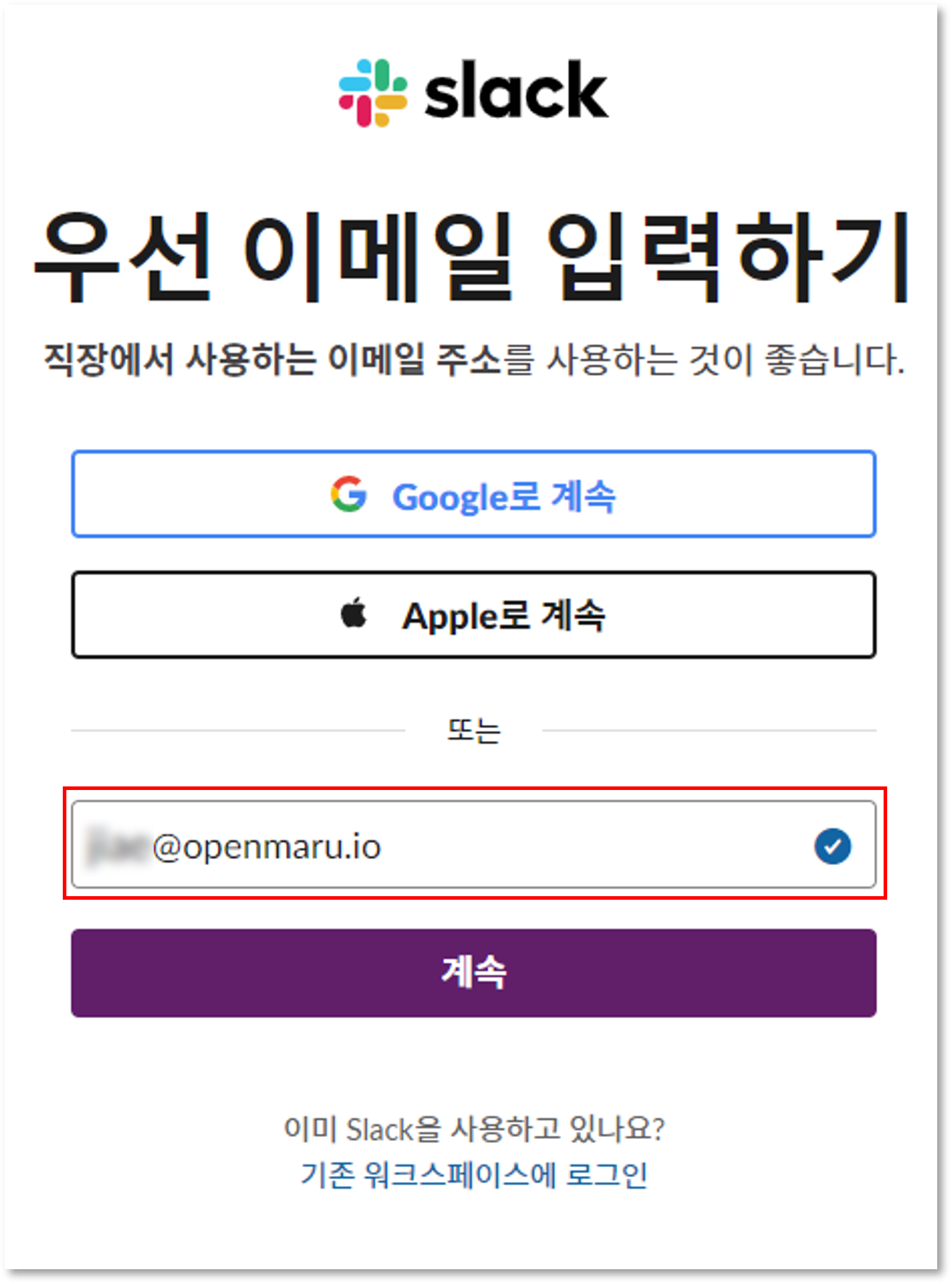 직장에서 사용하는 이메일 주소를 사용하는 것을 권장한다.