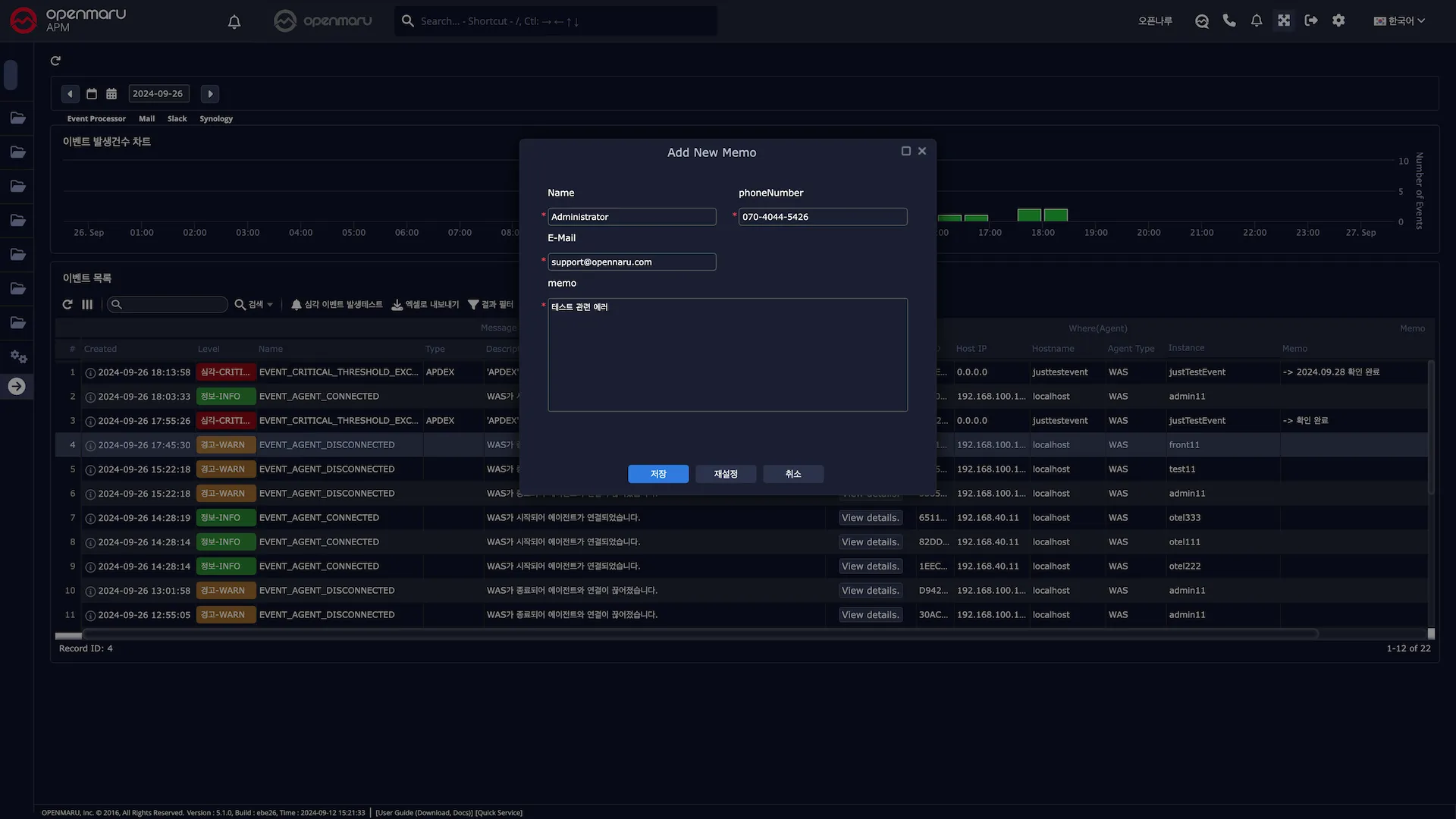 발생한 이벤트에 대한 사용자의 설명이나 의견을 남길 수 있다.