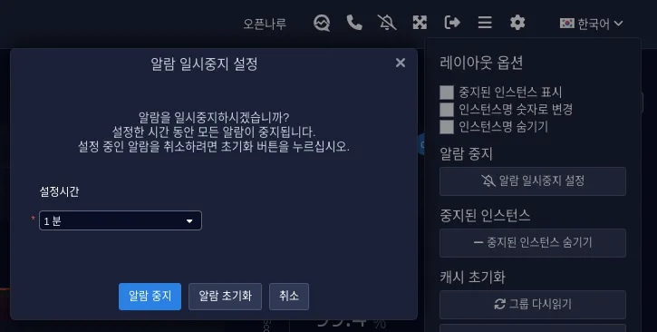 일정 시간 이벤트 알람을 중지 한다.(UI, email, SMS, Slack 등)
