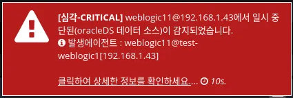 Weblogic Datasource 관리에서 Suspended 하면 감지하여 알람이 발생한다.