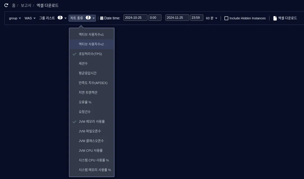 대시보드의 jvm heap usage 차트가 속도가 개선된 차트로 변경되는 옵션 추가