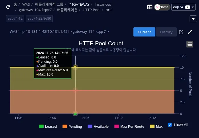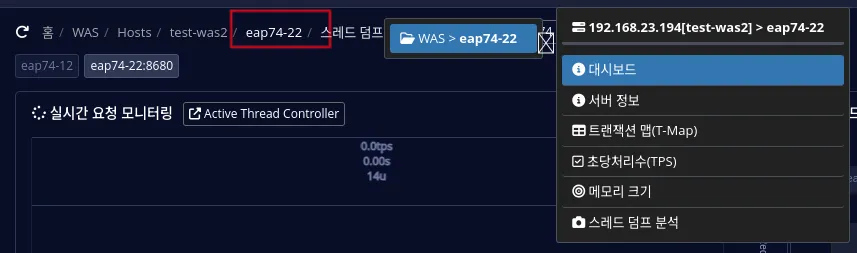대시보드 상단 WAS 인스턴스 이름에 HTTP Listen Port 정보를 출력한다.(일부 WAS는 지원 불가)