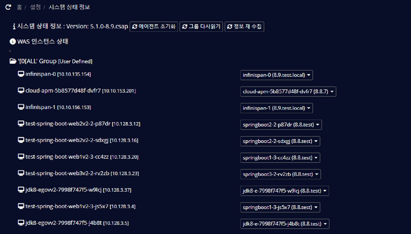 시스템 -> 에이전트 -> 서버정보에서 확인 가능